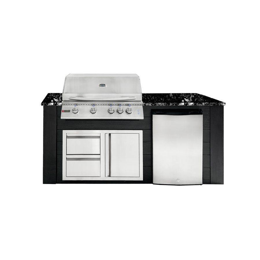 The Pro-Fit 6-foot outdoor kitchen island is an excellent choice for homeowners seeking a stunning and practical outdoor kitchen without the complications of a lengthy installation process. With its sleek and contemporary design, this island is visually appealing and crafted for durability. The lightweight yet sturdy aluminum frame is paired with low-maintenance Signature Decking, ensuring effortless cleaning. Additionally, the elegant granite countertop offers an ideal space for both preparation and serving.