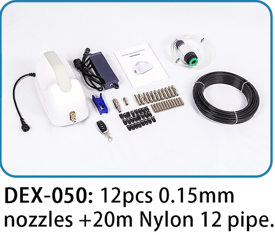 - Complete Misting Kit: Everything you need to easily install your own misting system. The package includes 12 precision-engineered 0.15mm nozzles and 20 meters of Nylon 1/4 inch high pressure nylon tubing and everything else you will need to install your mist cooling system.