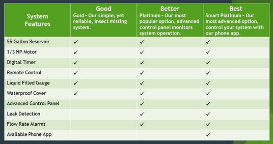Whether you want a simple and reliable system like our Gold System, updated technology with leak detection found on our Platinum System, or the most advanced system on the market, our Smart Platinum System with phone app and text notifications, we have you covered. When paired with our easy to install 30 nozzle base kit, you can start ridding your yard of insects the same day your system arrives! All of our systems are proudly assembled in the USA in Austin, TX.