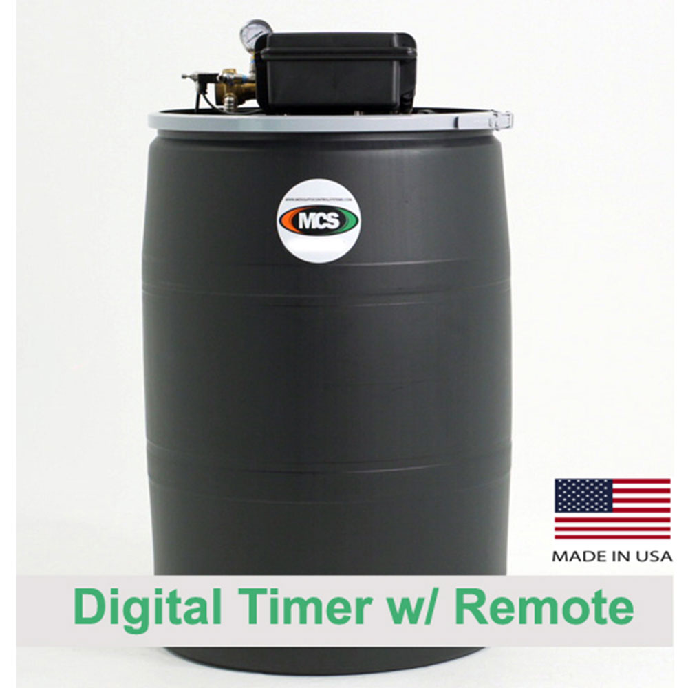 MCS Products 55 Gallon Gold Insect Misting System With 30 Nozzle Base Kit. Features include fully automated system, digital timer, remote control activation, liquid filled pressure gauge and needle valve pressure regulator for optimizing misting performance, waterproof cover, and a 1 year warranty.